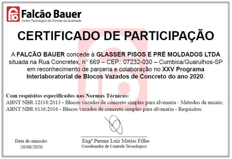 Programa Interlaboratorial de Blocos Vazados de Concreto do ano 2020 FALCÃO BAUER